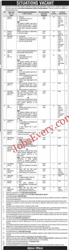 GHQ Rawalpindi Jobs Key Details: