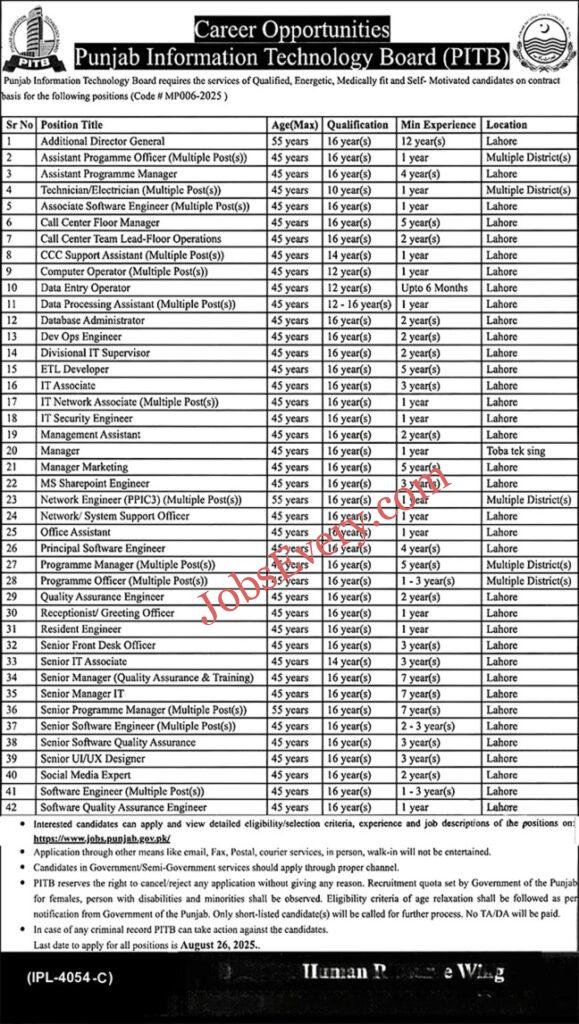 Jobsevery Provide the best opportunity for fresh and experienced graduates to get  job PITB Jobs in Govt of Punjab. PITB JOBS Punjab Information Technology Board (PITB) ne 2025 ke liye Programme Officers aur Software Engineers ke liye naye positions announce kiye hain. Ye jobs IT aur management field ke professionals ke liye behtareen mauka hain. Interested candidates apni applications given deadline se pehle submit karein.